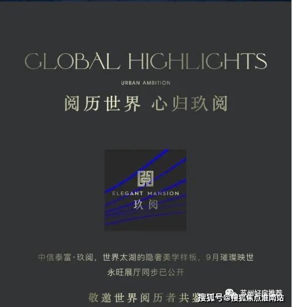 中信泰富·玖阅,即吴中太湖新城62号地块,是十万亿央企中信泰富集萃30余年豪宅经验,沿袭「九系」精筑豪宅血统,继玖著云庭之后的全新升级之作。