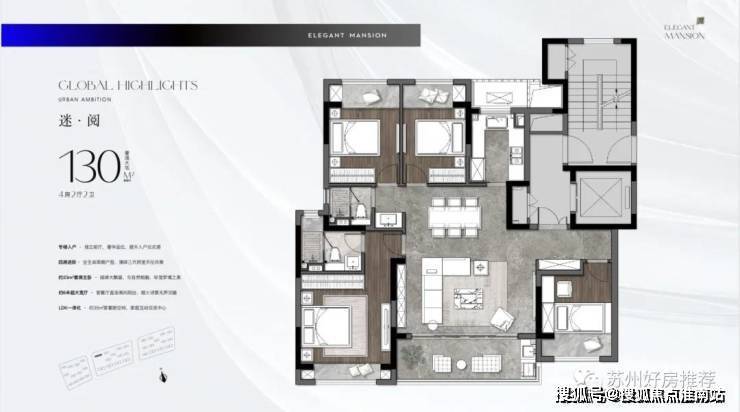 130:正四房、南北通透,大横厅设计,独立电梯私密入户