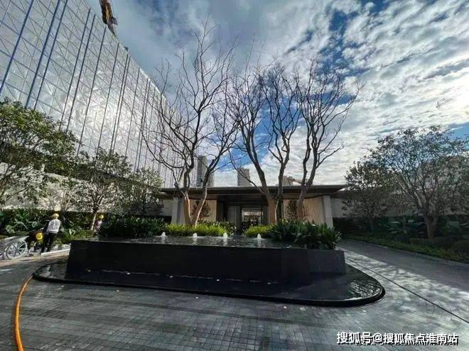 杭州滨江万科朗拾滨屿府售楼处电话:400-9966-224【预约热线】宝门廊后面,是超大的落客庭院,打造了叠瀑石林中央水景,还有2棵超过10吨的丛生大朴树,非常吸睛。