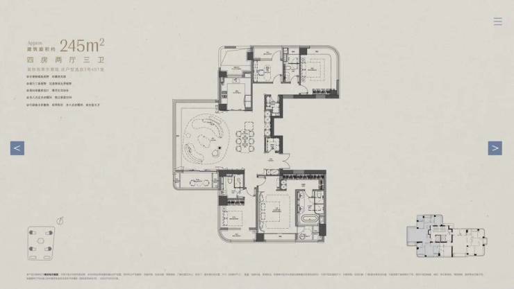 本项目专注改善型大户型,营造纯粹圈层,主力户型建筑面积约200-400㎡。