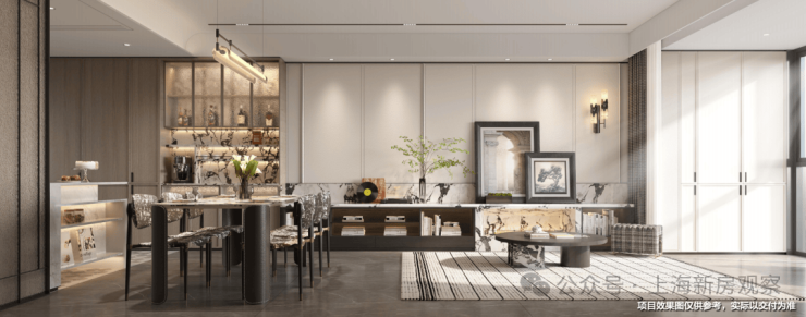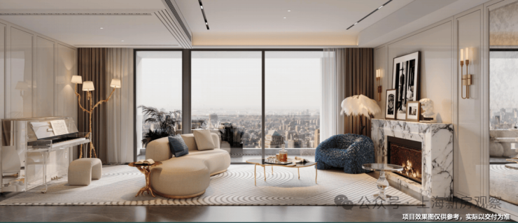 交付标准:精装交付,采用东芝/嘉格纳冰箱、日立中央空调、爱迪士新风、岩板与大理石铺装等一线品牌