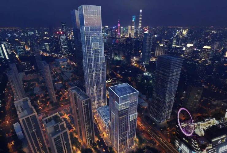 以龙盛湾上约320米办公楼为“静安第一高楼”(建设中),其他约300米、约250米、约200米、约150米高楼依次铺开,形成一道连绵起伏的天际线!