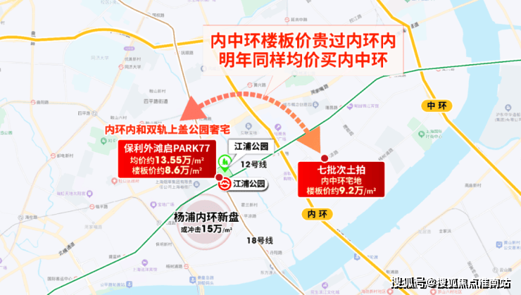 其一,七批次土拍,杨浦内中环宅地楼板价高达约9.2万/㎡,已高过内环内的保利外滩启PARK77(楼板价约8.6万/㎡)。