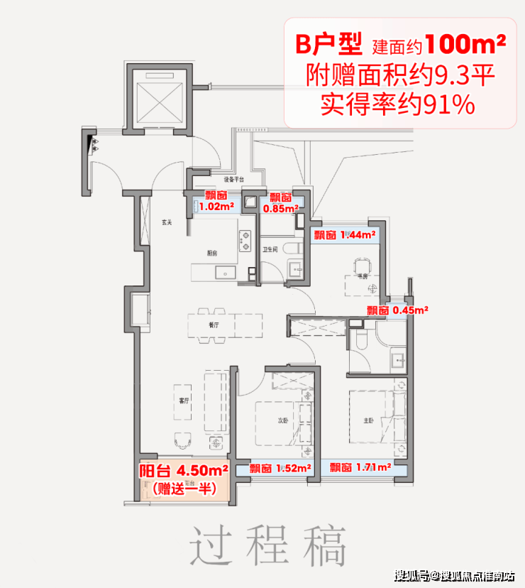 一方面,全系户型标配“全屋飘窗(全赠送)+大阳台(半赠送)”,经专业测算,百平米中间套实得率约91%,赠送面积达9.3㎡,相当于一间次卧。