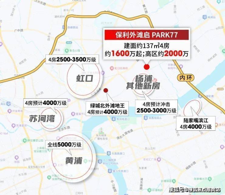 北外滩地王4房预计售价4000万级;虹口其他新房4房价格普遍在2500-3500万;静安苏河湾4房预计4000万级;陆家嘴滨江4房同样4000万级。如此对比之下,保利外滩启PARK77高区2000万级4房的价值,可谓市中心“独一份”。