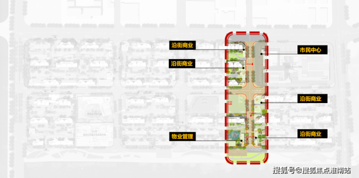 商业街:沿恭礼路设置商业店铺,创造形式丰富多样的时尚街区, 形成充满烟火气息的城市街道。