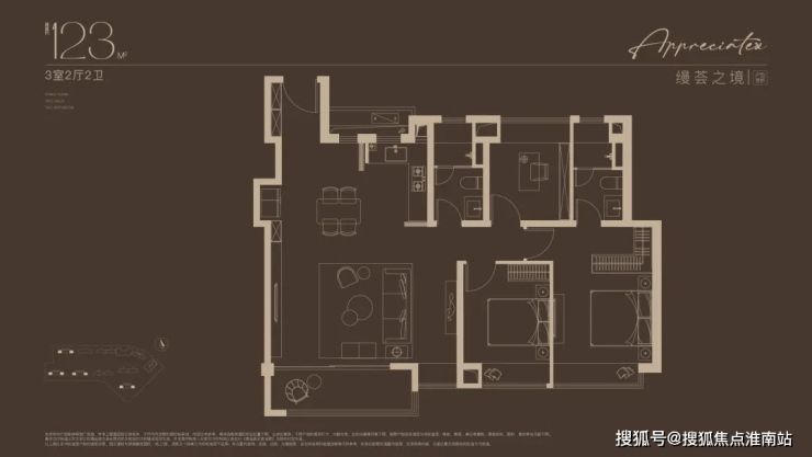 建面约 123㎡的三房,主卧带独立卫浴 + 衣帽间,为您带来酒店式套房体验;