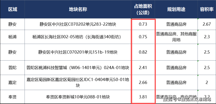 上海土拍部分地块信息