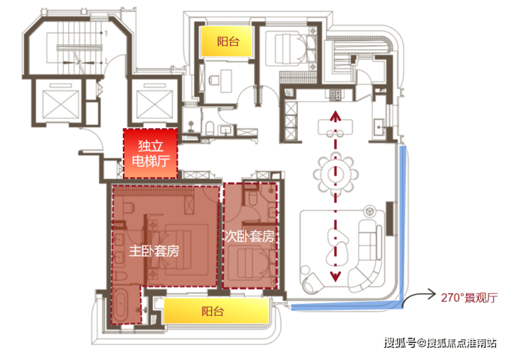 建面约220㎡户型位于5号楼楼王位置,这是一个非常出乎人意料的产品。