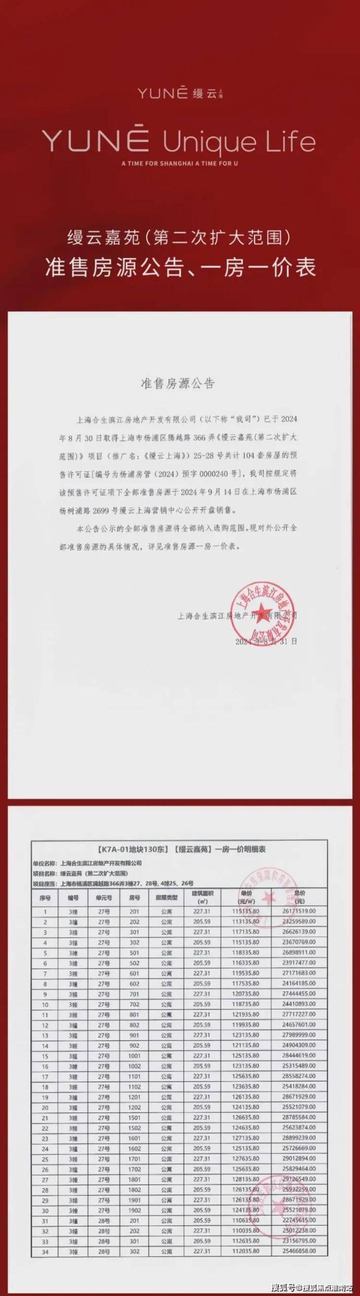缦云上海三期一房一价表: