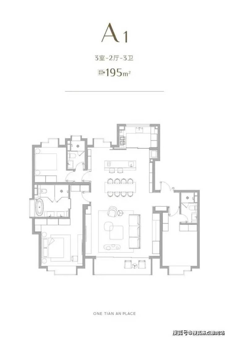 不过,重中之重还是这个建面约195㎡奢阔三房户型。