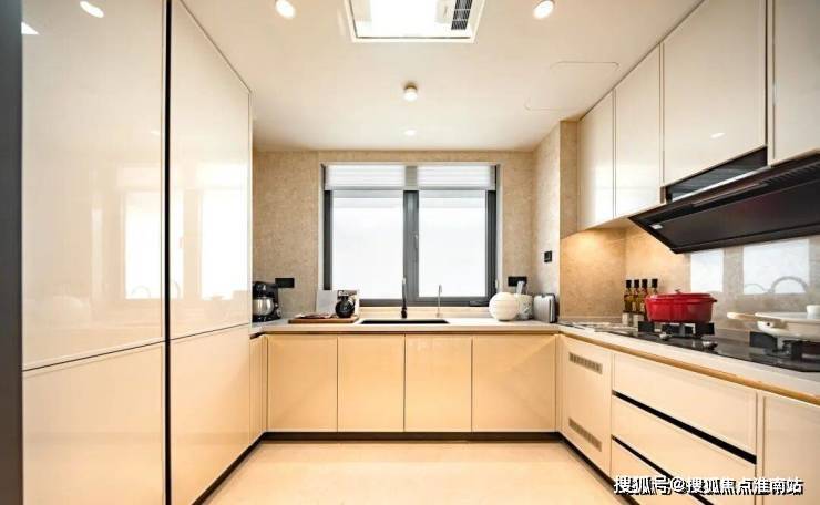 如三大件用的是华宅必备的全屋智能家居,日立两联供的中央空调、地暖,法国爱迪士的新风;厨房用的是博世四件套(燃气灶、吸油烟机、洗碗机、蒸烤一体机),2个东芝嵌入式冰箱,并额外配置3个拉篮;主卧还有日本皇家特供的伊奈智能马桶,沄璟主卫做了杜拉维特双台盆,再铺上威尼斯棕的台面,干净整洁的同时,也有美学视觉体验。