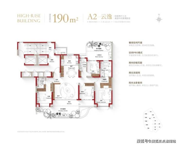 再来看看户型设计,完美呼应了四代宅的超高使用率,空中露台、阳台等各项数据的尺度非常惊人