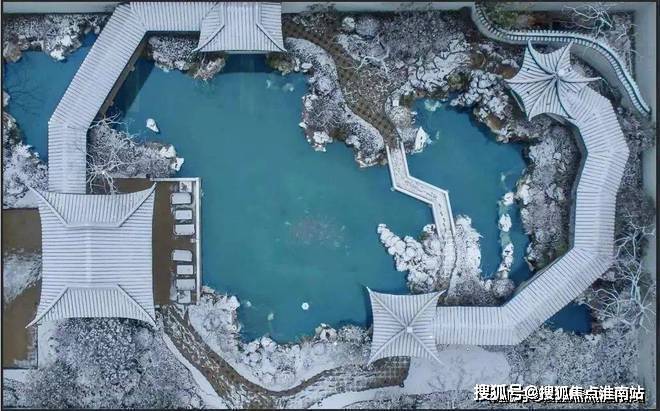 外部四水环绕,内部双龙戏水,以水带路,园以水活