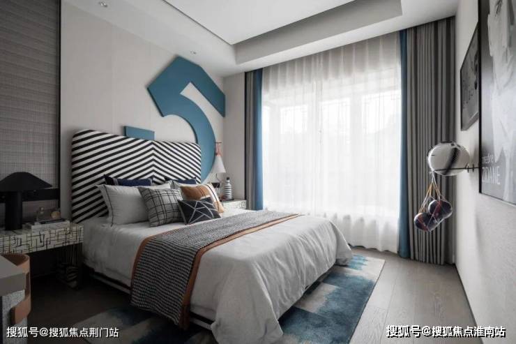私密场域依旧保持静谧,黑白色基础上搭配了更多的色彩,例如深棕、浅紫等,艺术品的衬托深邃迷人,热络了家的氛围。