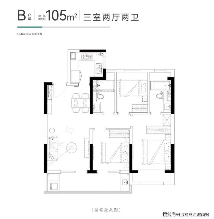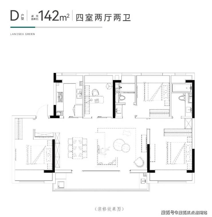 户型优选南北通透方正布局,开间与进深比1:1.5为佳,避开暗卫设计。