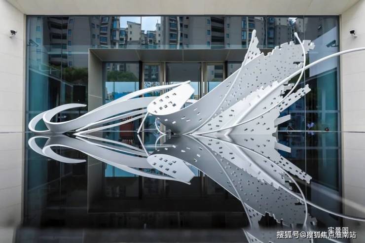 在探索看与被看的互易性的过程中,采用玻璃幕墙提升售楼处的通透感,打破传统的建筑模式,形成一个开放共享、贴近生活的城市公共空间。建筑本身与环境相得益彰,共同成为了“被看”的风景。