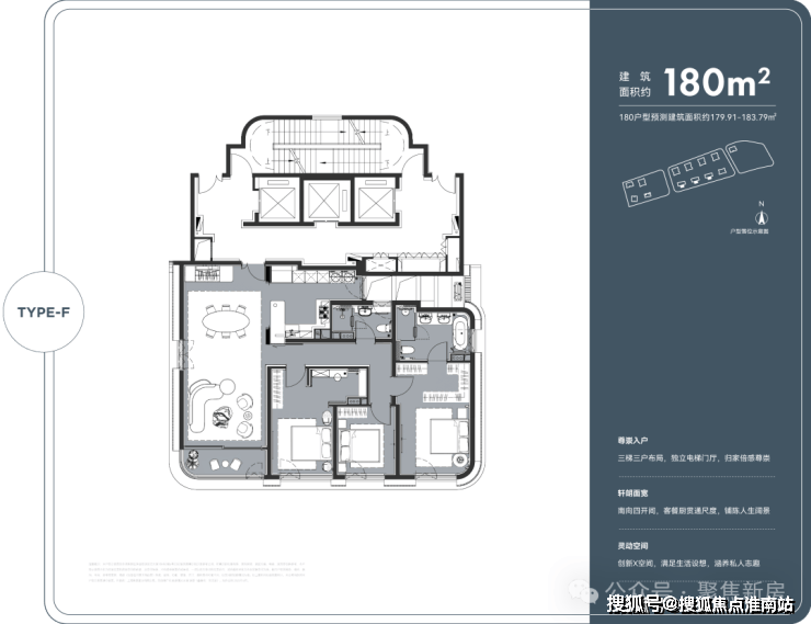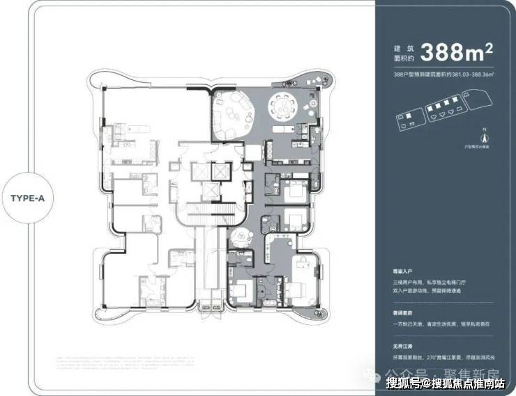 首先,三梯两户布局,私享独立电梯门厅;双入户洄游动线,预留保姆通道,顶豪该有的尊崇感被诠释得淋漓尽致。