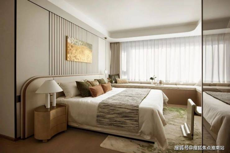 主卧套房设计,尺度惊人,贯穿南北,预留步入式衣帽间的空间,配备270°转角飘窗,实现无界视野和优异采光,大宅气度油然而生!