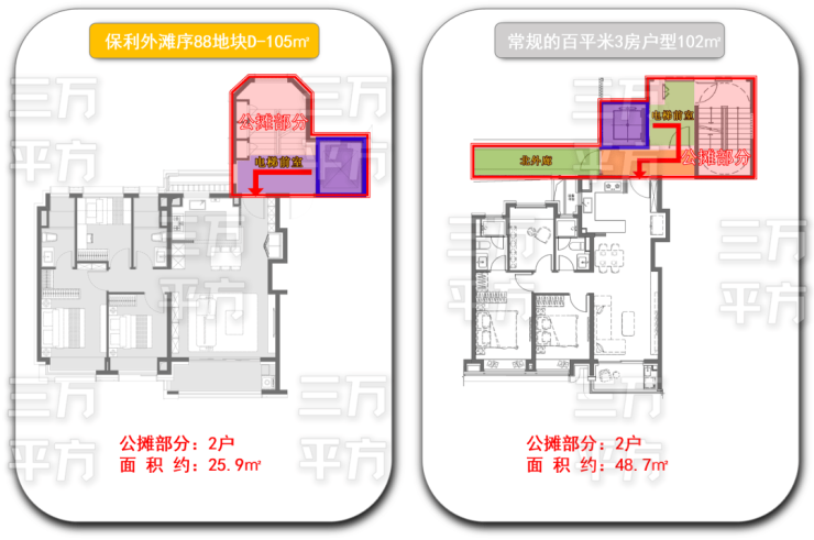 本户型超级地毯率的另外一个原因是拥有“恐怖级的超低公摊”。我们来看专业方面的对比。