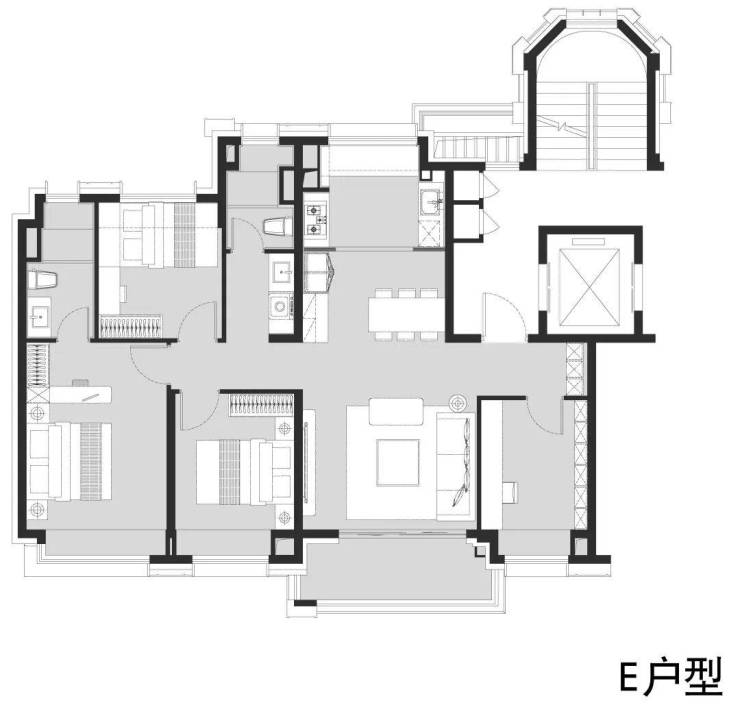 我们再看建面约128㎡E户型。