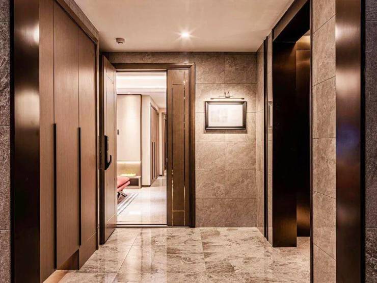 电梯采用了对穿门的形式,使得每一户获得了自己独立的私属候梯空间。候梯空间十分方正。