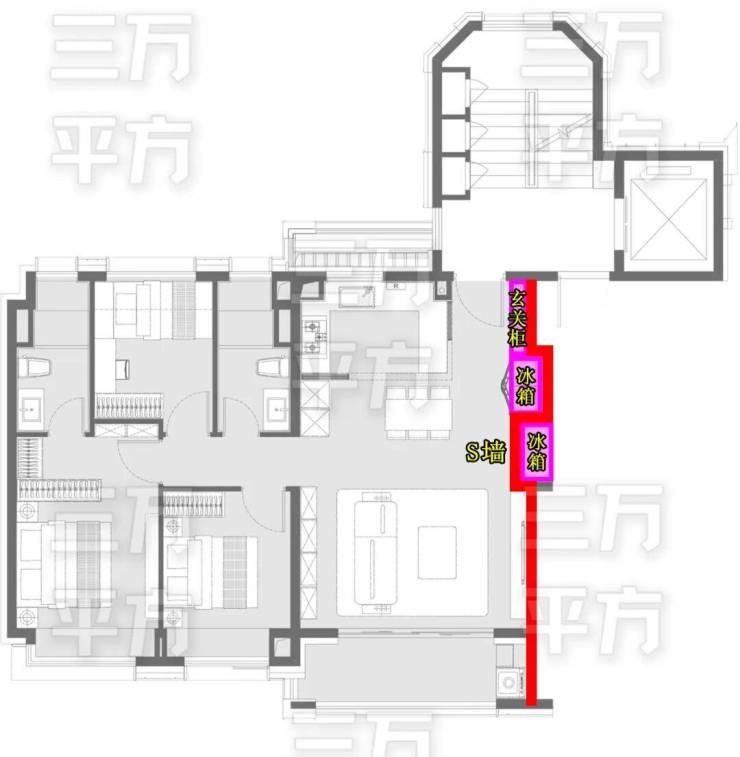 入户玄关+S墙;