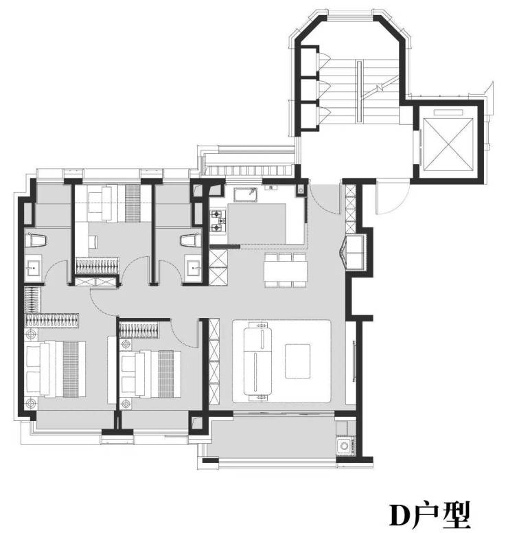 我们先来看建面约105㎡D户型。