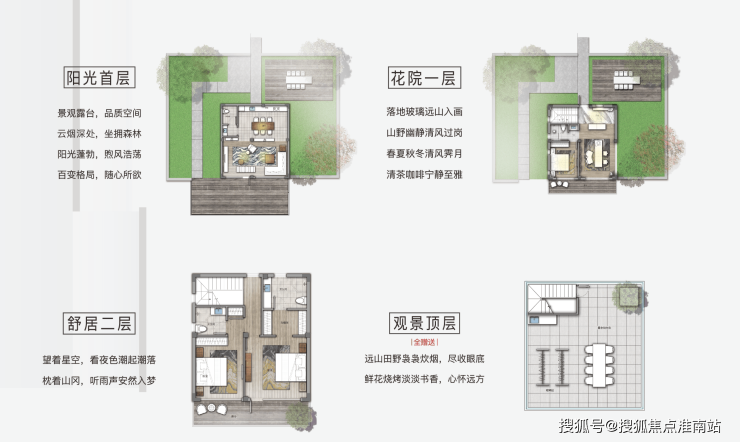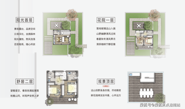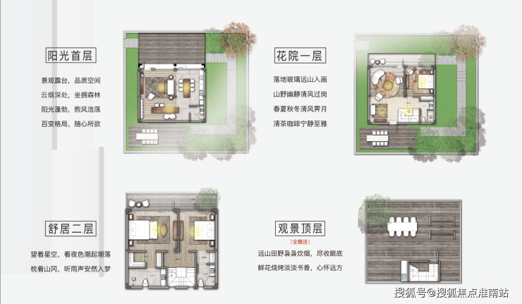 整个项目规划为四个片区,云顶项目只是整个度假中的一个山墅居住组团,为了解决业主的吃喝玩乐的问题,云顶后期规划开发有私人会所、度假酒店、农耕体验、康养中心、娱乐中心、特色民宿等功能配套。