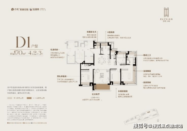 对于纯改善需求的量身定制,在前两个户型基础上,做了更尊奢的开间尺度。据说,保利前基于客户做了非常多的样本调研,所有亮点也能看到保利对于改善家庭需求的思考。