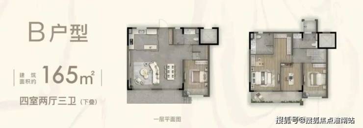 B户型(165平下叠):440-520万 三开间