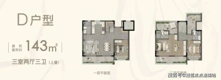 D户型(143平上叠):380-450万 三开间