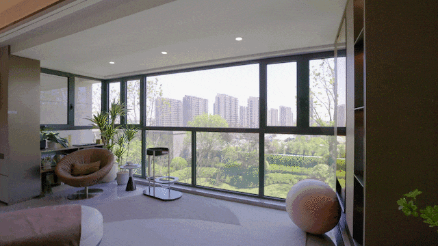 试想一下,当窗外的水系在缓缓移动,国际住宅定格在落地窗前,公园里的树影婆娑,站在落地窗前的你,心跳是不是也跟着停顿了几秒?