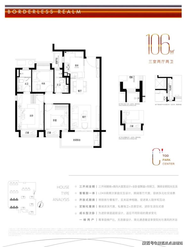 只有可生长的空间,才能适配成长家庭。建面约106㎡三房两厅两卫,一梯两户无连廊,不仅得房率高,而且私密性更强。