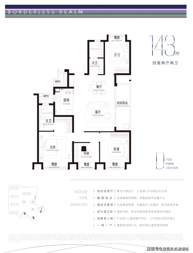 270度转角大阳台,IMAX级观景面尽收眼底,进一步凸显了内外皆公园的景观资源优势。次卧可以推门即达阳台,双向出入动线灵活自由,增添便捷与温馨。