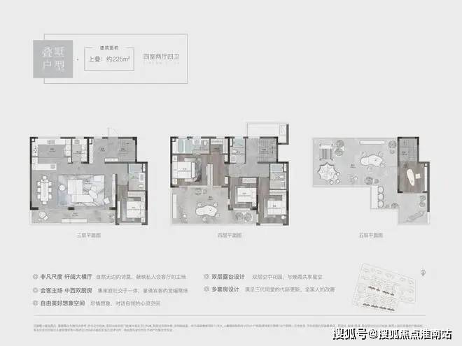 【交付标准】:高层精装(中央空调+新风)、洋房精装三大件、叠墅毛坯