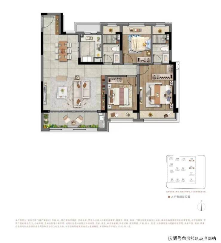 4+1室2厅3卫,约82%高得房率,轴线约17m极致面宽,厨房、客餐厅咫尺相连。轴线约6.7m灵动横厅,连接宽景阳台,豪华双套房设计,奢配家政空间,将舒适贯穿每个角落。