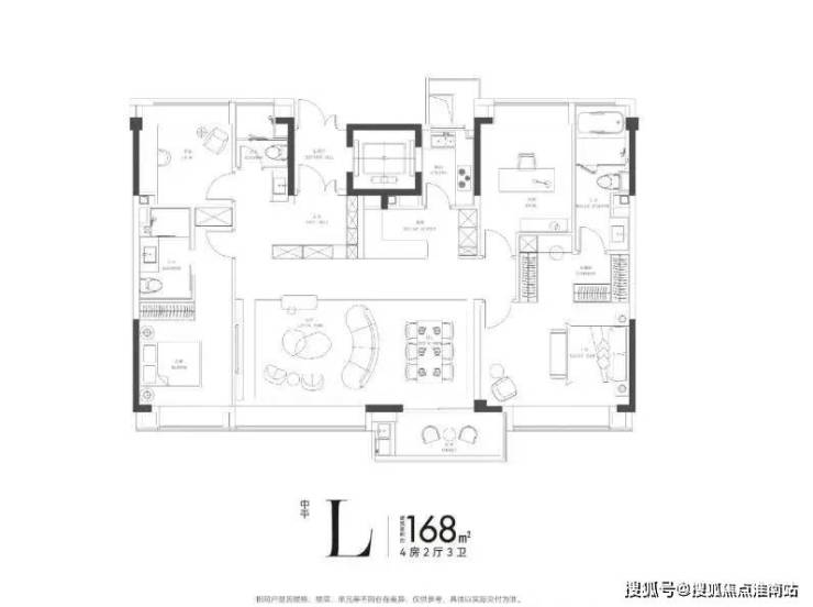 大师臻造,同频世界奢宅美学理念。高层/小高层立面采用部分天青色铝板,叠墅立面采用天青色釉面陶板,融合大面玻璃开窗(LOW-E玻璃),彰显澄澈简约,又时尚前卫的摩登气质。
