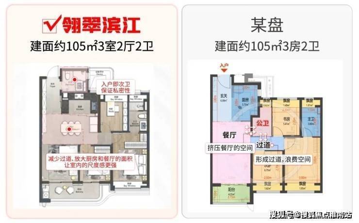 本次项目主推建面约105㎡3房2卫: