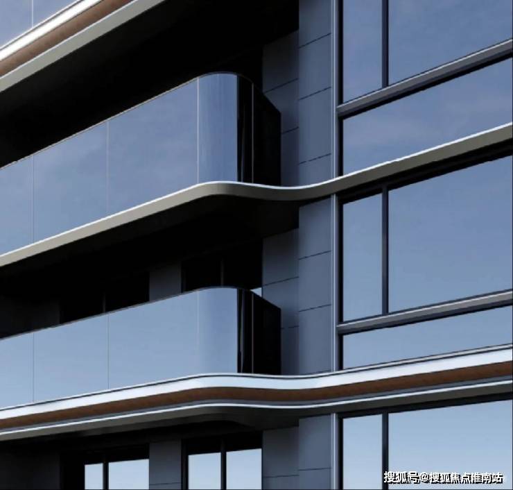 比如入户大门配备大面积的金属格栅、局部莫奈奢石。