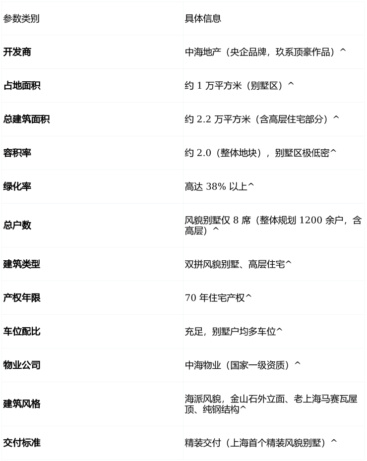 项目为上海罕见的纯双拼风貌别墅社区,全球仅发售 8 席,圈层极度纯粹。主力建面约 249-318㎡,采用“地上三层 + 地下两层 + 庭院 + 露台”的立体空间布局^: