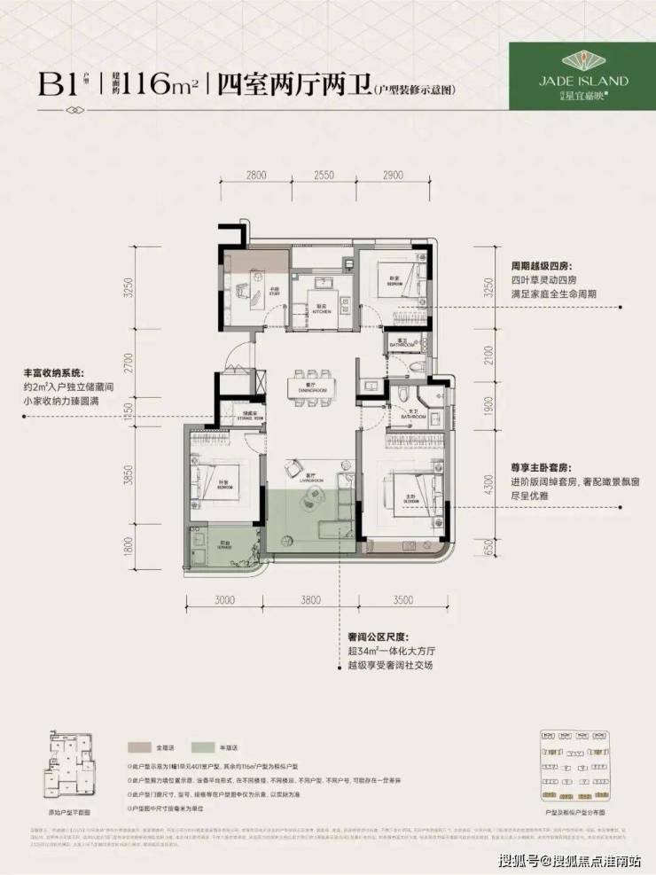 116㎡四房+储藏室:杭州唯一同面积段实现该设计,空间利用率极高。