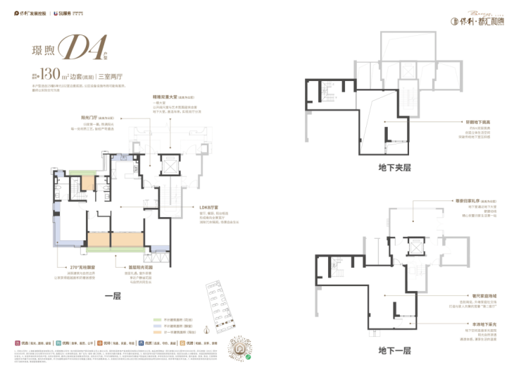 洋房:建面约129-140㎡四房,得房率约97%+,层高3.3米