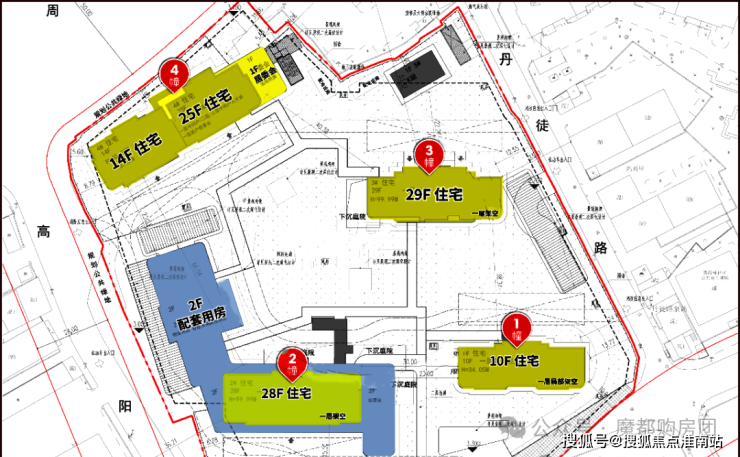 4号楼分别为14F高层住宅、一层人才房;25F超高层住宅,一层中间户以及西区居委会;三层中间户人才房;