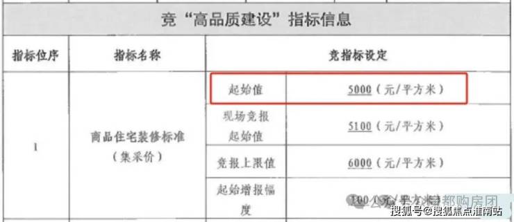 装修标准起始值5000元/㎡,封顶6000元/㎡。