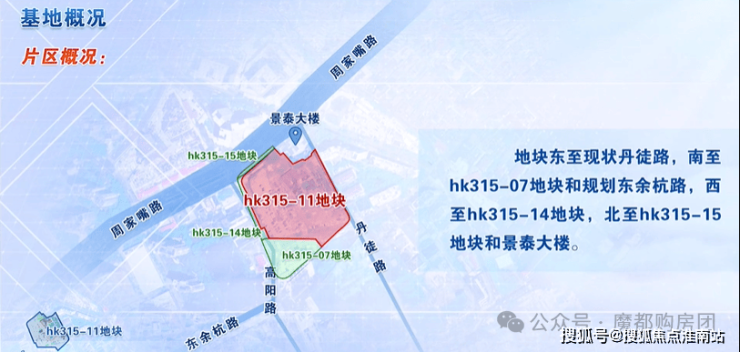 地块位置东临丹徒路、南至东余杭路、西至高阳路、北至周家嘴路,出让面积19441.07平方米,容积率为2.63,计容建筑面积为51130.01平方米,其中住宅计容建筑面积不超过48603平方米,地块限高100米。