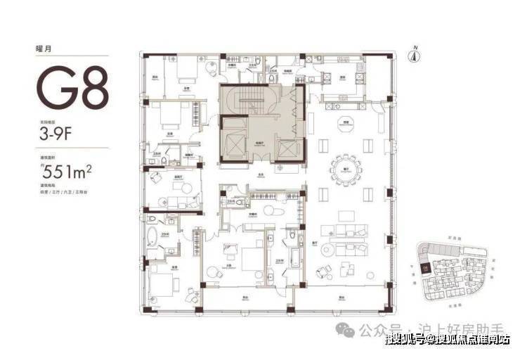 建面408㎡大平层南向面宽26.8米,得房率89%