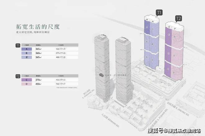 户型方面,金陵华庭二期配置了建面约360-875m²的外滩天际大宅。