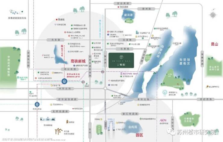 项目近享醇熟镇区、高铁枢纽区、元和生活区、园区金融区及阳澄生态区五大繁华区,坐拥丰盛配套。