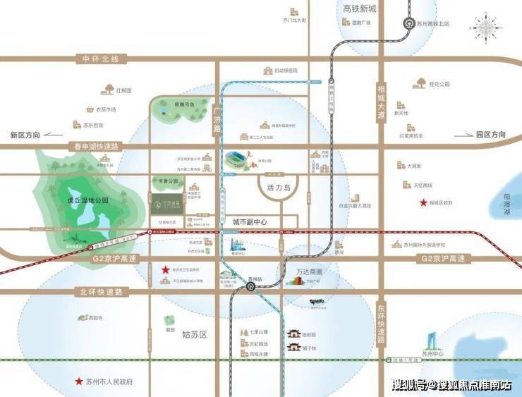 项目占位活力岛正核,咫尺姑苏古城区,比邻苏州园区、新区时代新城,磅礴待发,与苏州共风华。